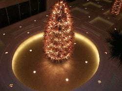 ホテルは、超キレイでなんと大っきなツリーが天井から・・・