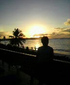 なんとバチあたりな青い空と海、輝く太陽と真っ赤な夕日。