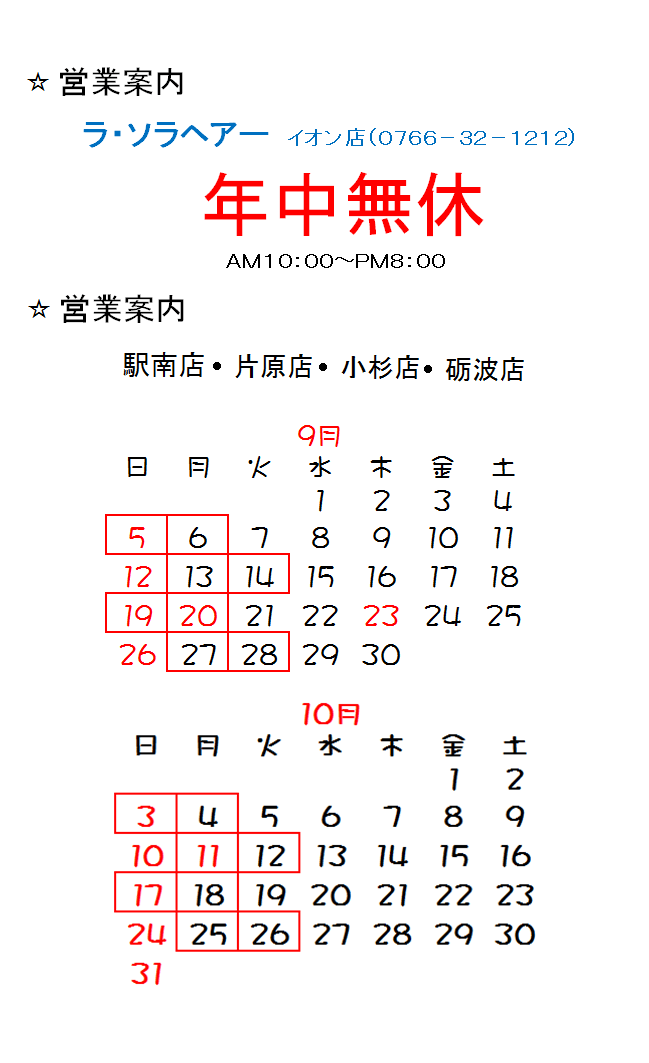 🌕9月10月営業案内🌕