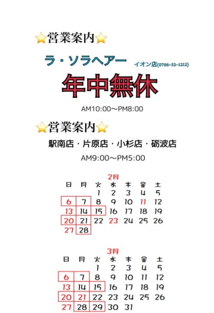 ⛄️2月、3月営業案内⛄️ 2022.01.31 パールヴィ、ラソラヘアーでは感染予防対策を実施しております。 https://pearlv.com/_wp/wp-content/uploads/2020/11/IMG_0158.mp4 🔝 こちらをクリック🤏動画で確認🎞