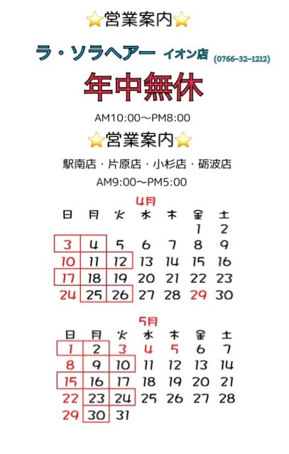 🌸4月、5月営業案内🌸 2022.04.05 パールヴィ、ラソラヘアーでは感染予防対策を実施しております。 https://pearlv.com/_wp/wp-content/uploads/2020/11/IMG_0158.mp4 🔝 こちらをクリック🤏動画で確認🎞