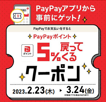 ・PayPay支払のみ対象です。他決済ではご利用いただけません。