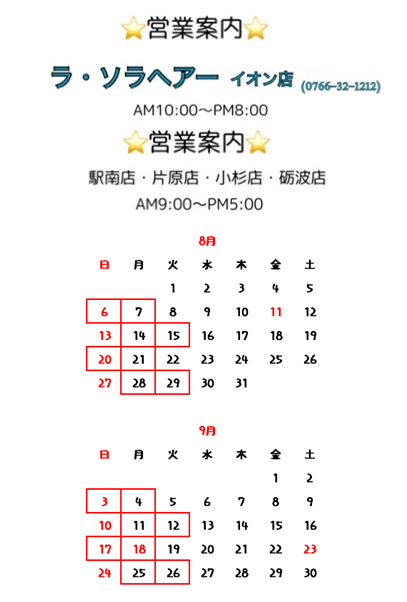 🍉8月9月営業案内🍉