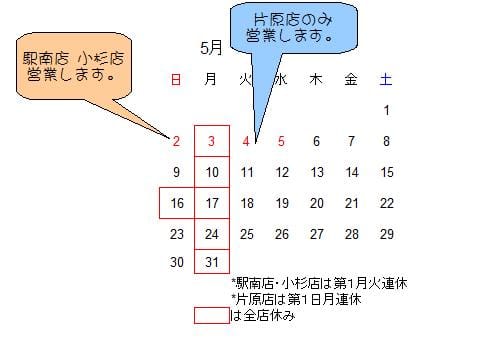 5月の営業案内