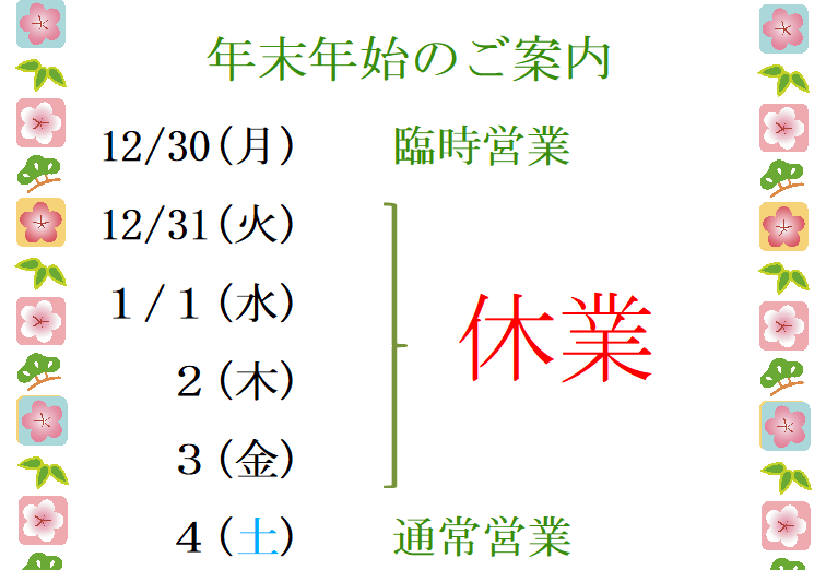 2024-2025年末年始営業時間のお知らせ