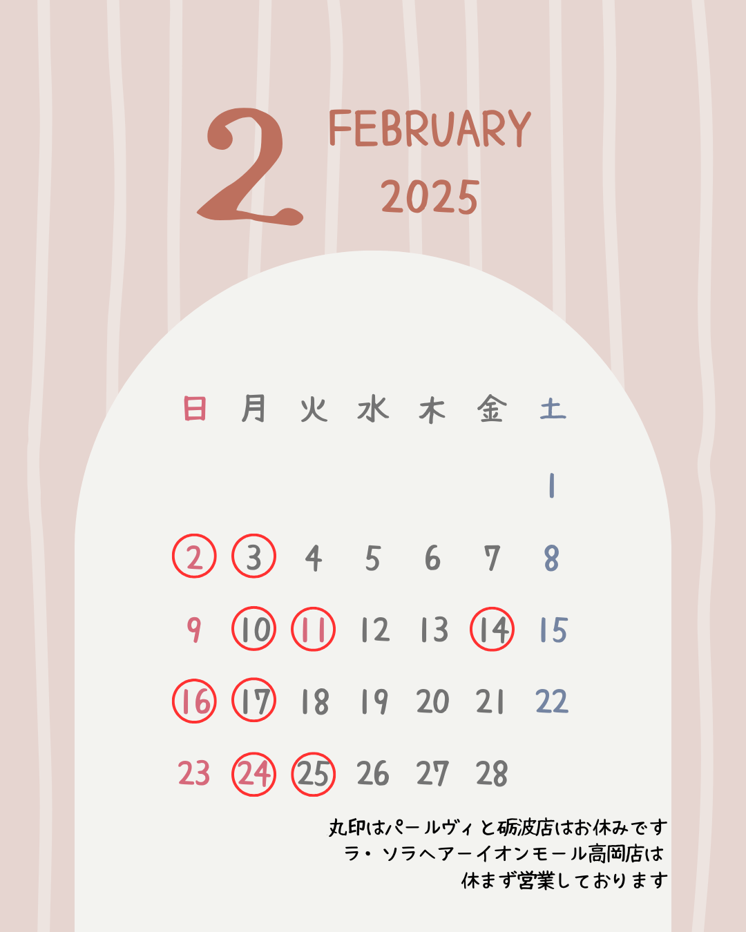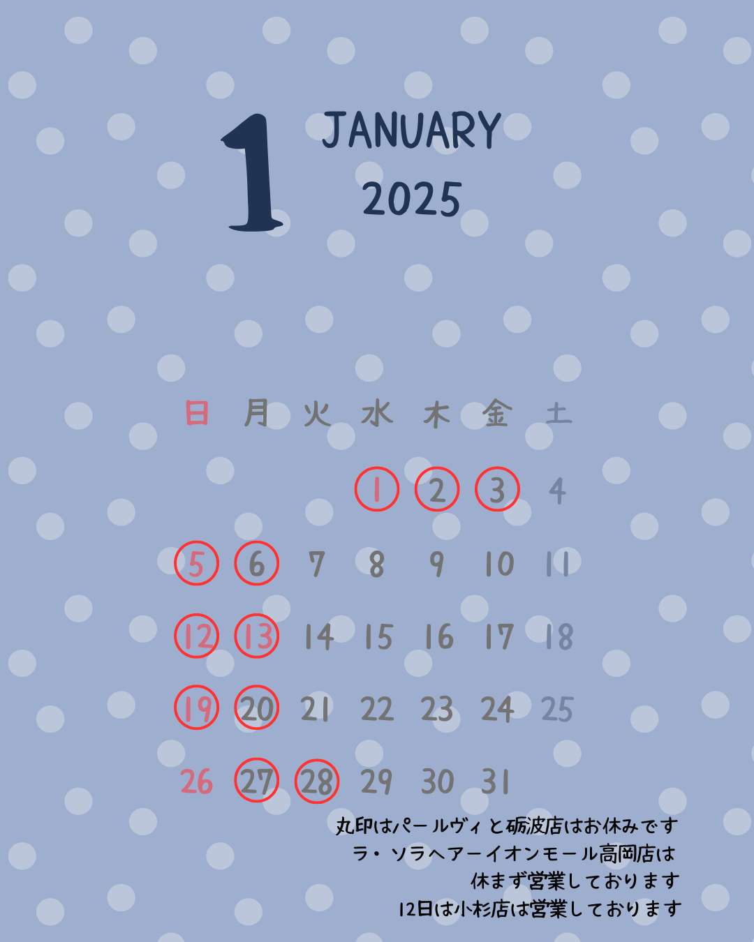 2025年1月2月営業案内