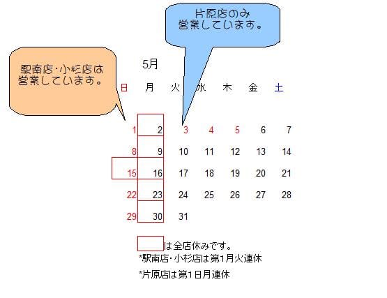 5月の営業案内 2011.04.30 5月の営業案内です 皆様、お花見は行かれましたか? ちょうど満開の時に晴れててよかったです。 でも、桜の時期はいつも寒いですね! 春のお出かけ前に、ぜひ髪のお手入れに・・・ お待ちしております